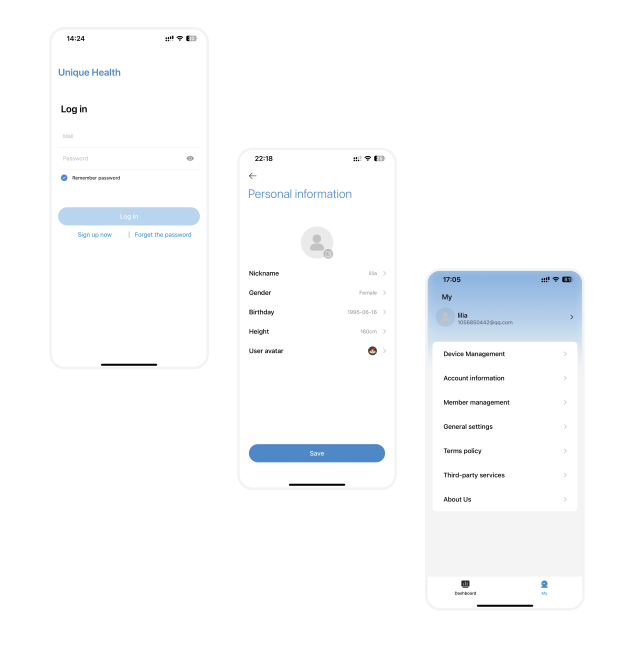The Herz P1 Smart Scale is a smart body composition scale for home use. It does more than show your weight. When used with the Unique Health app (App Store or Google Play), it helps you understand changes in your body over time, like body fat, muscle mass, water percentage, and more.